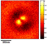 Fig. 3 : Near-field measured above an isolated gold nanodisk. Two lobes are visible, oriented along the incident polarization direction.